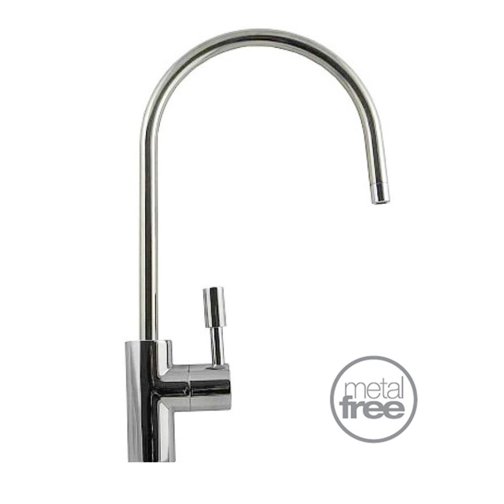 Krómozott, háromutas csaptelep, amelyet a hagyományos kiállások mellett a háztartási RO víztisztítókhoz lehet csatlakoztatni.
