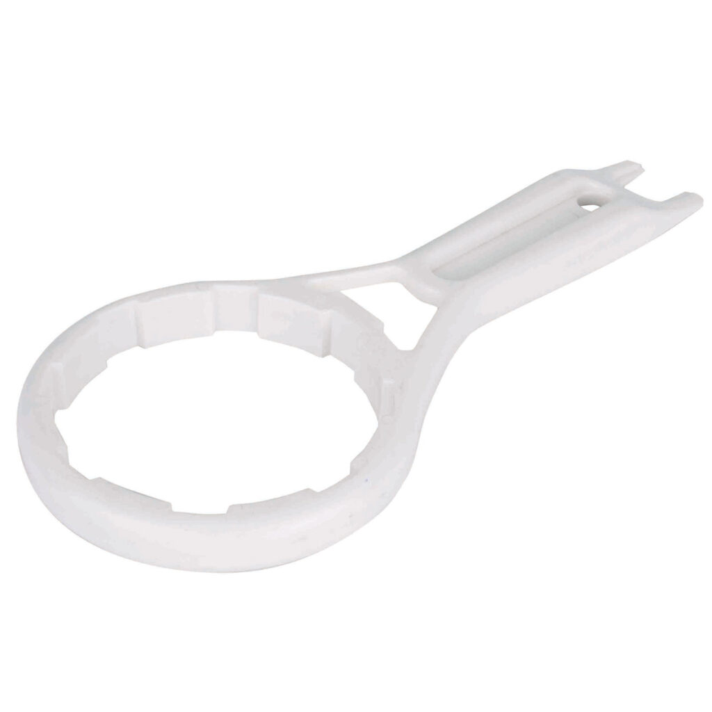 RO membránház kulcs egy műanyag körmös kulcs, amely az RO membrán fedél roncsolásmentes meghúzását, lazítását teszi lehetővé.